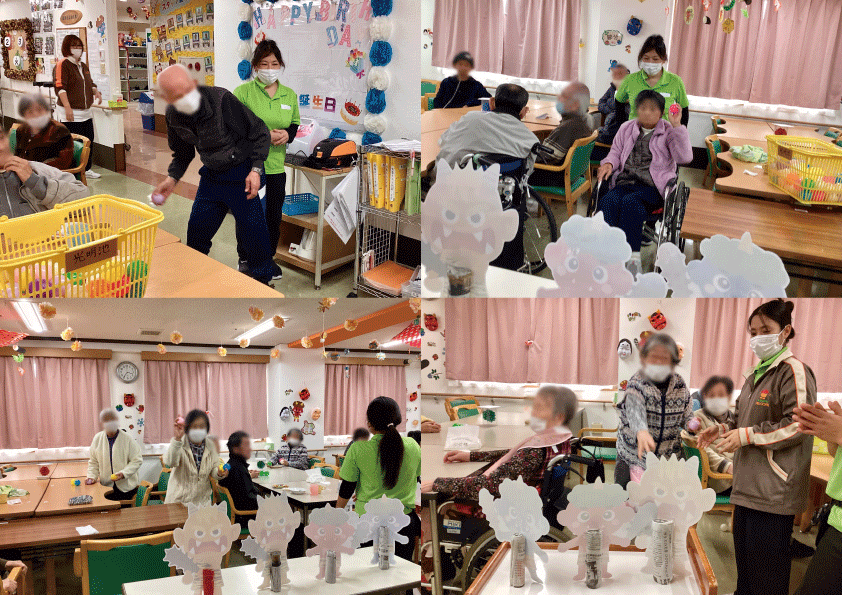 全部倒せた人、明後日の方向に飛んで行った人もおられ皆さん笑顔で楽しまれていました。